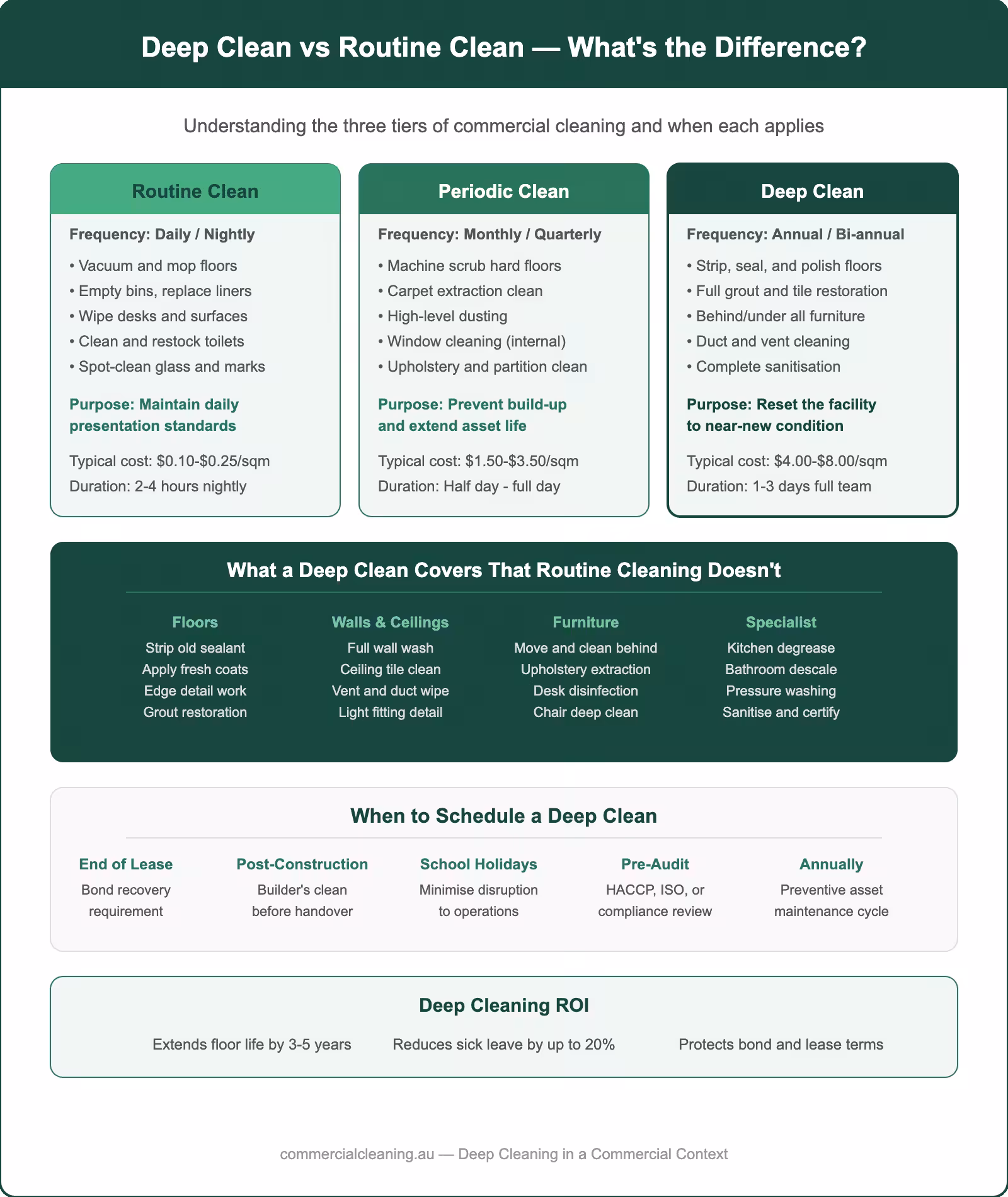What is the difference between deep cleaning and regular commercial cleaning?