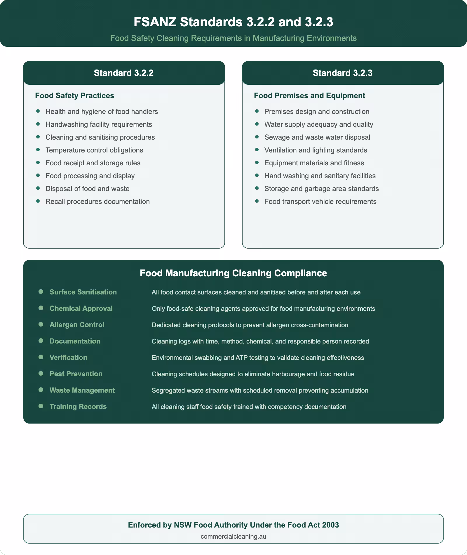 FSANZ 3.2.2 and 3.2.3 in Food Manufacturing