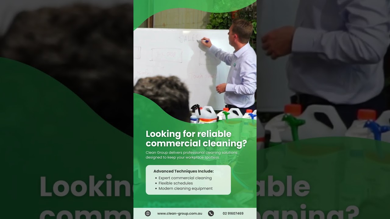 Clean Group is a Sydney-based commercial cleaning company with over 25 years of industry experience. Founded by Suji Siv, our team of 50+ trained professionals services offices, warehouses, medical centres, schools, childcare facilities, retail stores, gyms, and strata properties across Sydney, Melbourne, and Brisbane.